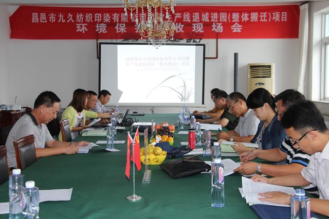 昌邑市九久紡織印染有限公司印染生產(chǎn)線(xiàn)退城進(jìn)園(整體搬遷)項目竣工環(huán)保驗收會(huì )”在九久公司舉行。